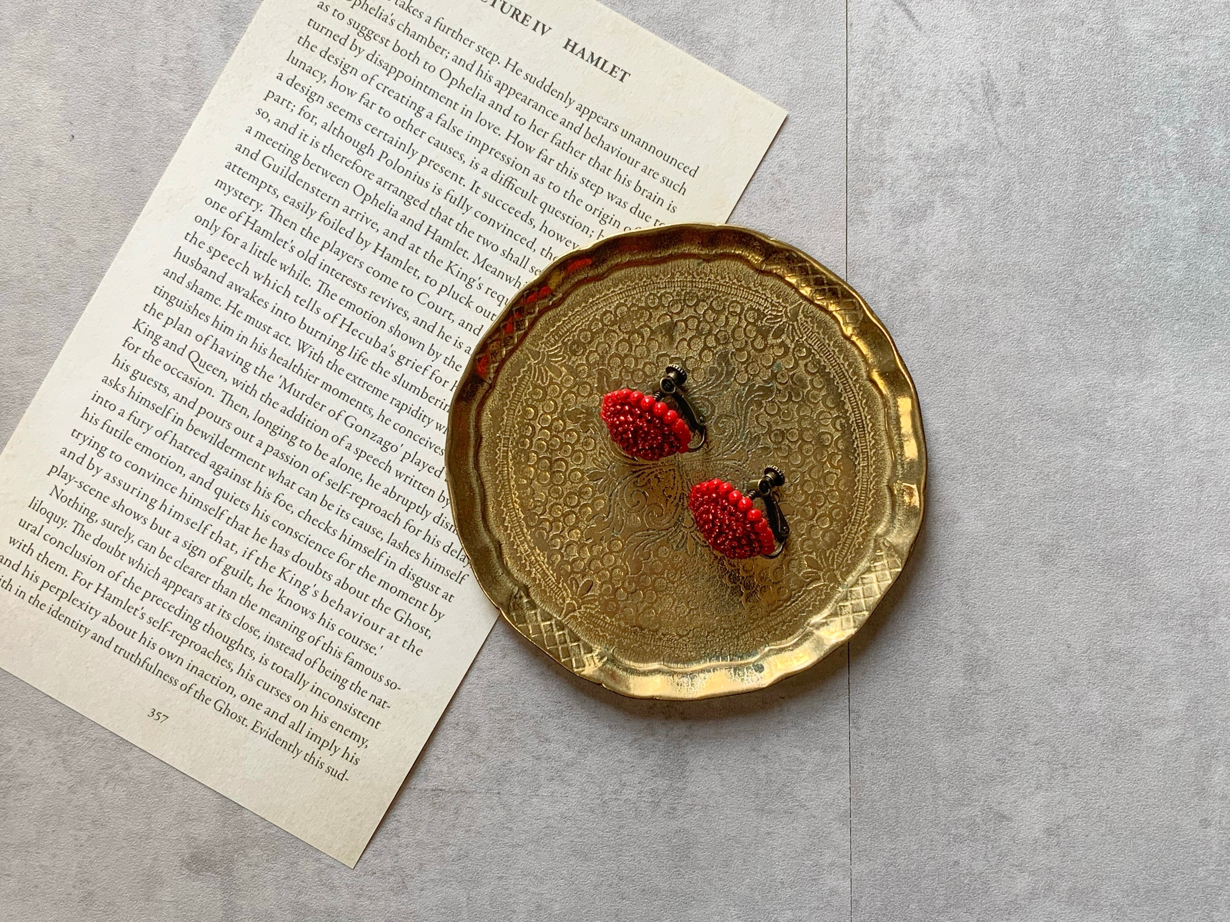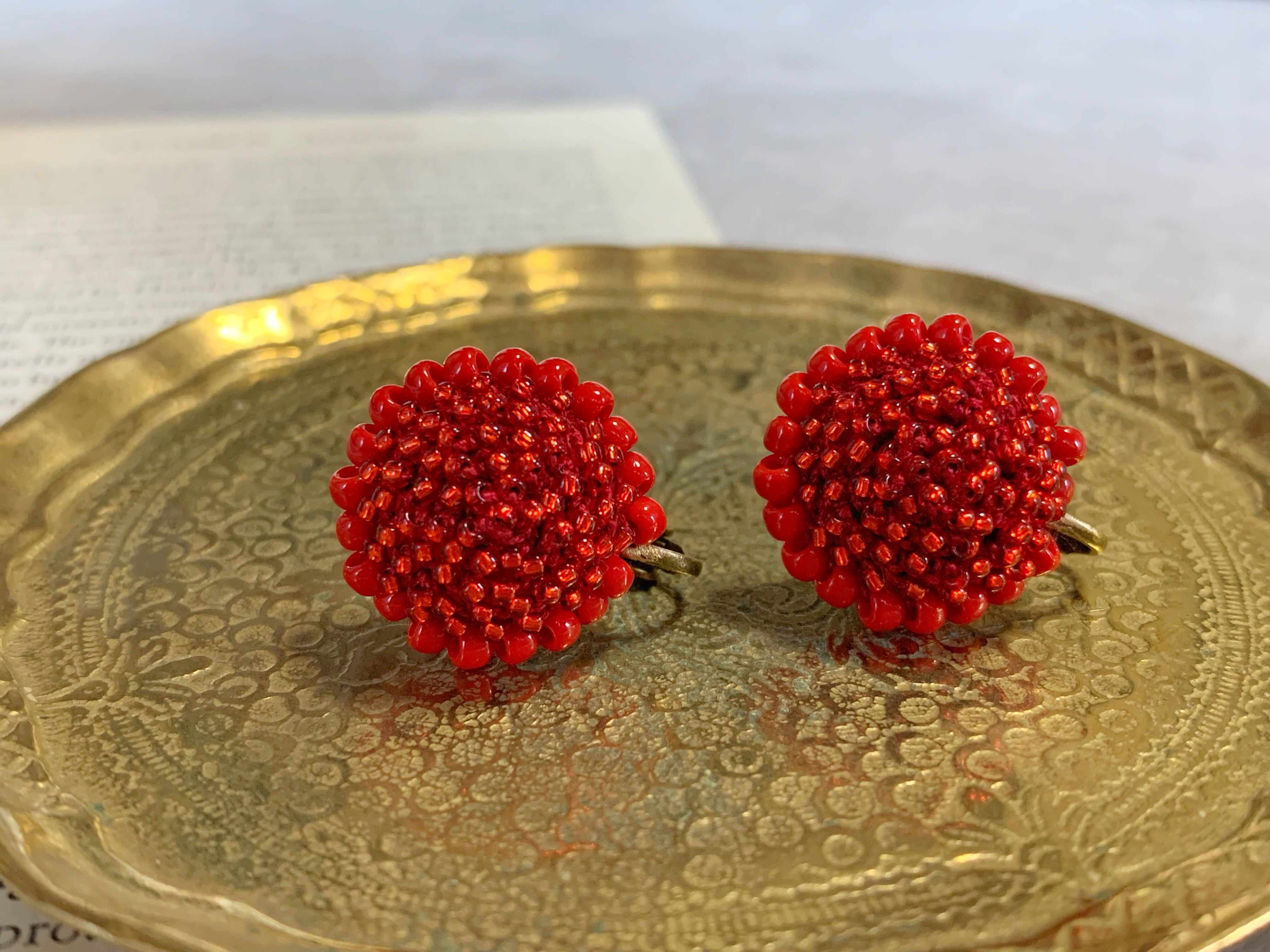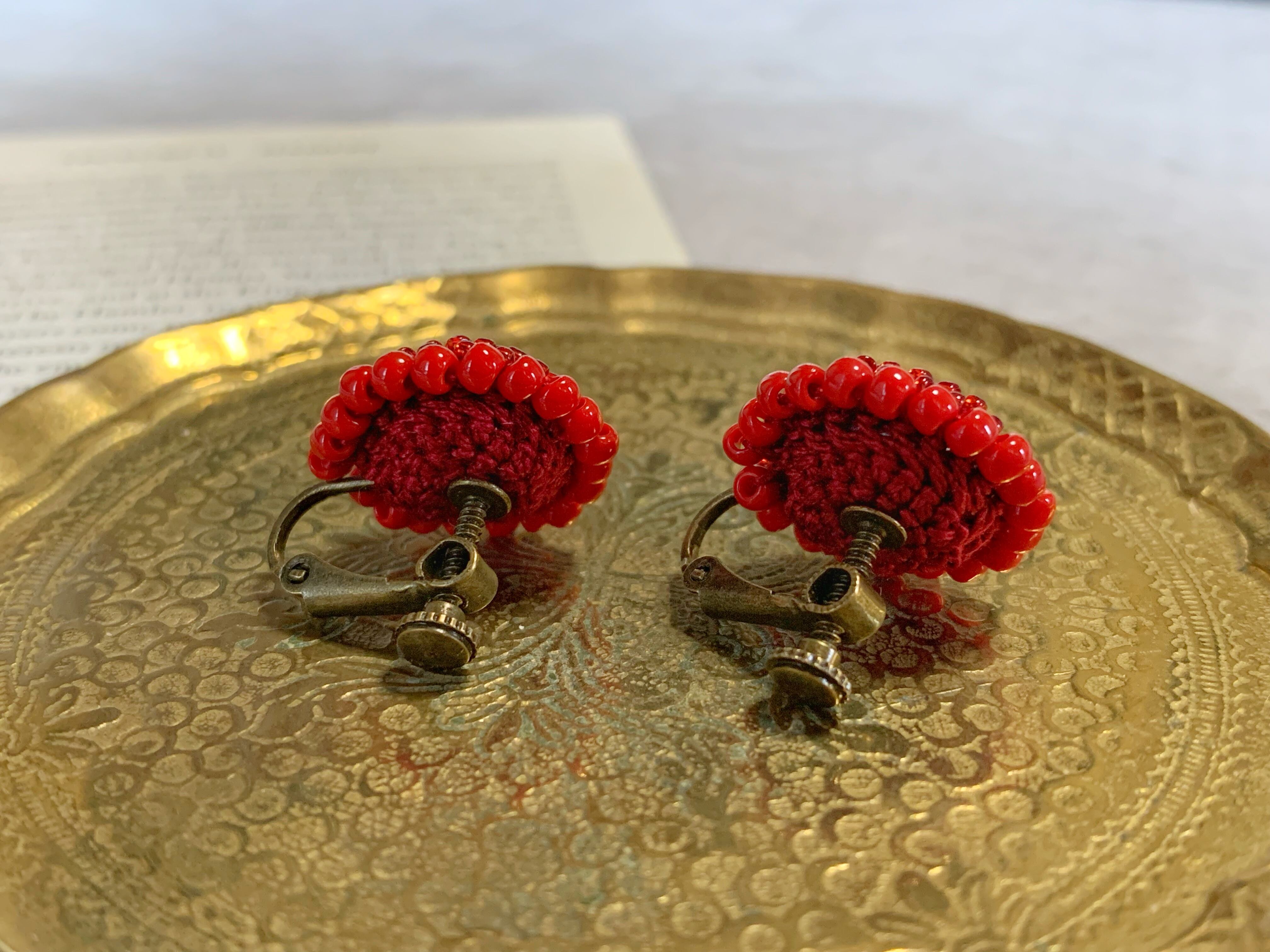 真っ赤なイヤリング をビーズクロッシェで作成しました。