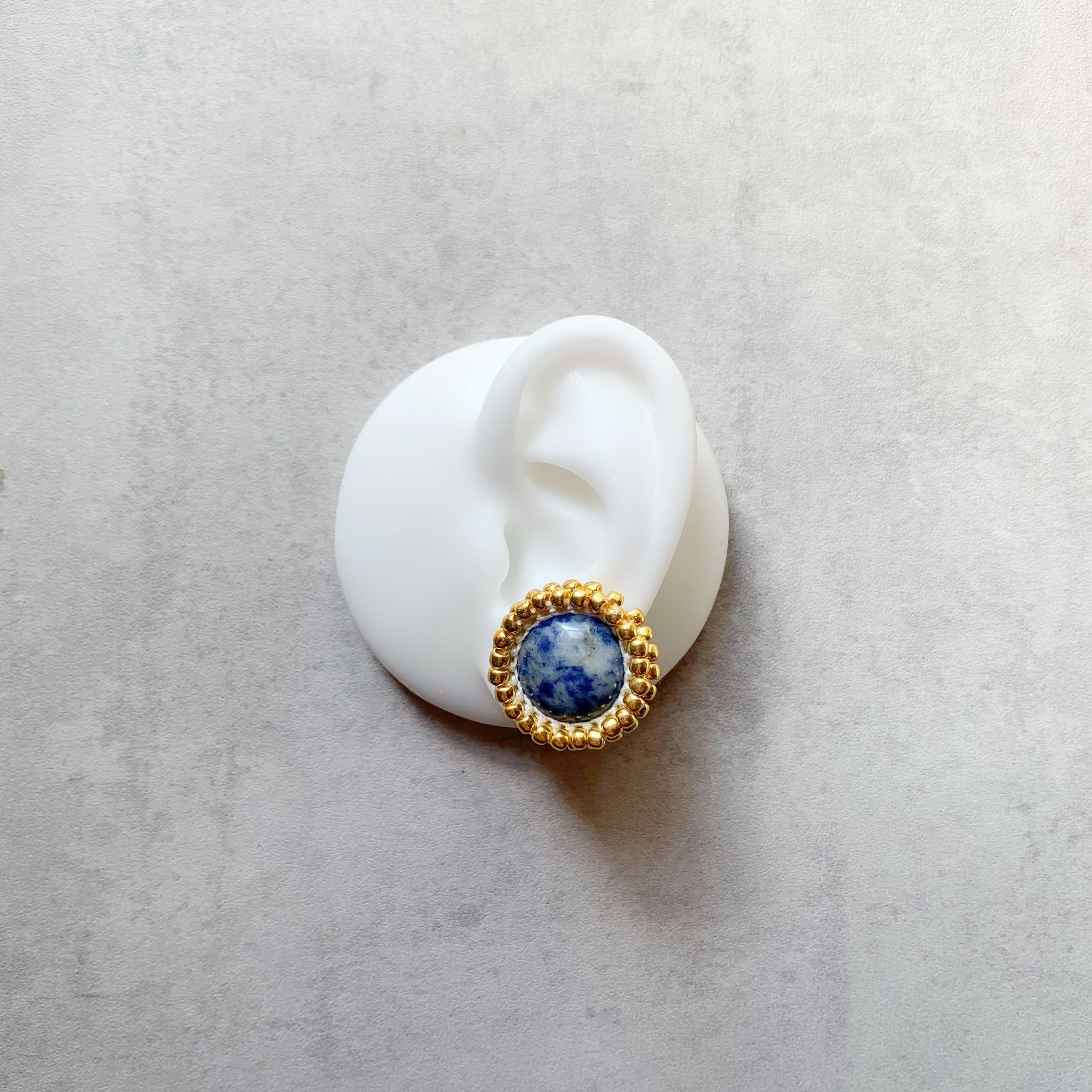ブルースポットストーンとビーズが織りなすアクセントは、耳元を華やかに彩ります。