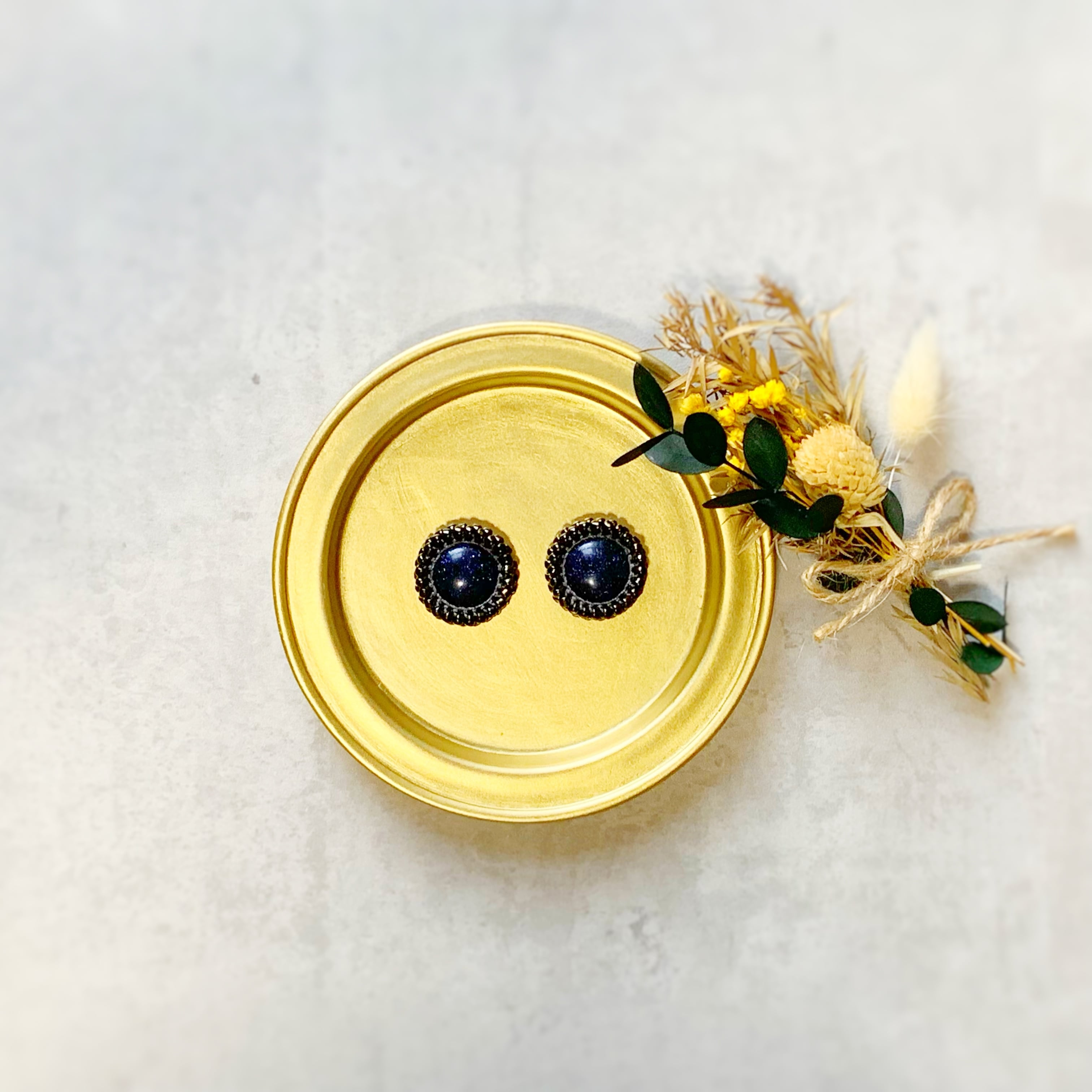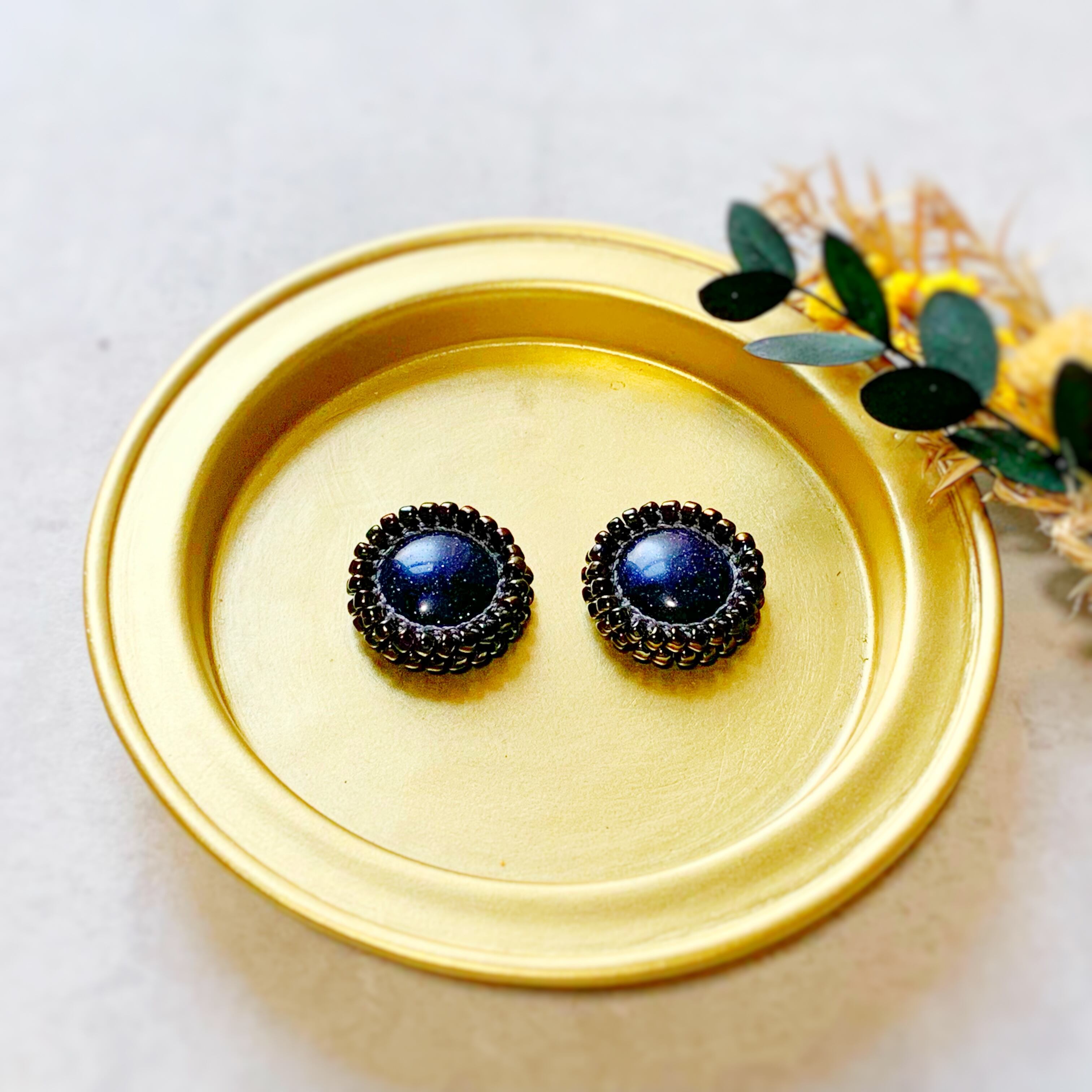 素材···ビーズ、合成ストーン(ブルーゴールドストーン)